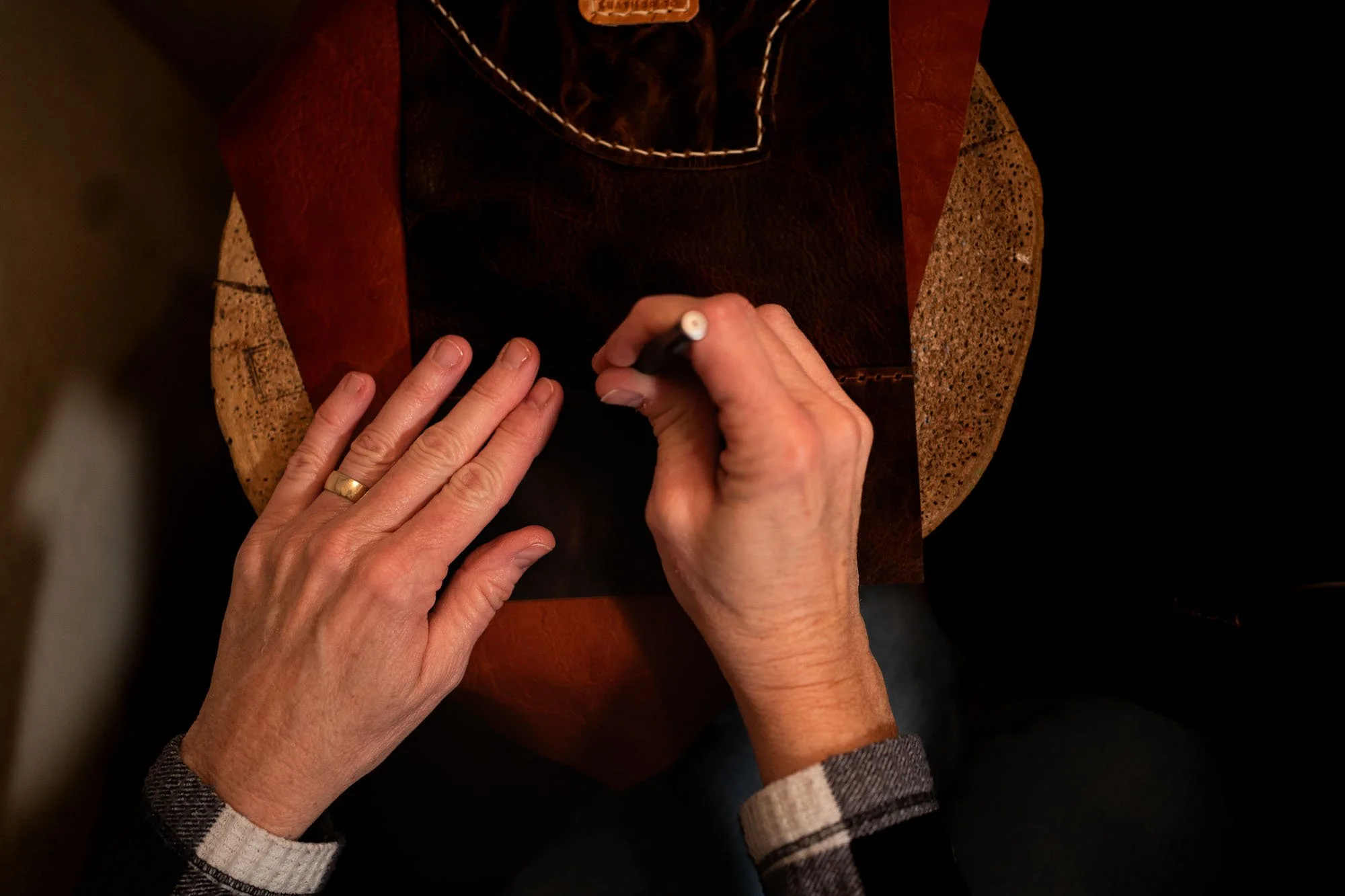 Every Walnut & Willow bag begins on the workbench, hand cut, stitched, and finished in small batches using traditional saddle stitching techniques.